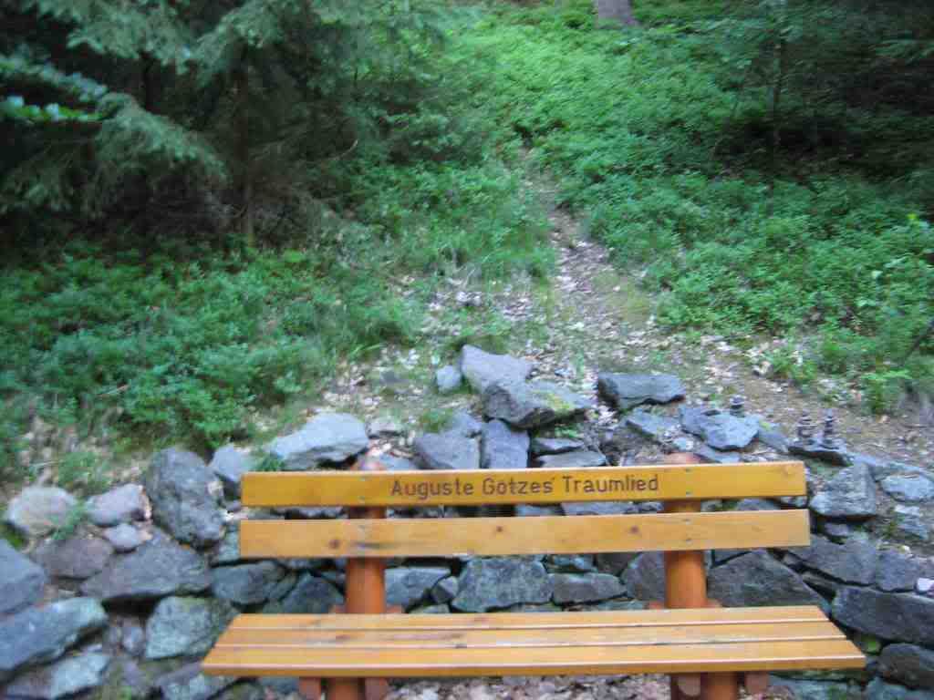 A bench on the Goethe Wanderweg... It says "Auguste Gotze's dream-song" for some reason...
