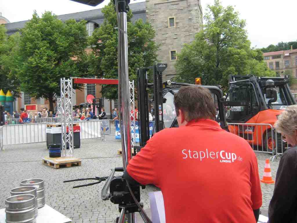 There was a competition going on, complete with a makeshift stage for live music where a band played old American 50's songs like Elvis Presley. The competition involved picking things up in little forklifts - it was called StaplerCup and it apparently drew a lot of people.