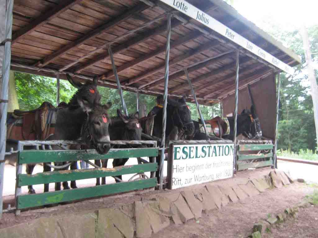 Near the top of the hill, there is a small area with a bus-stop, a Thüringer wurst (famous sausage) kiosk, and a station where one can ride a donkey the rest of the way up to the fortress...