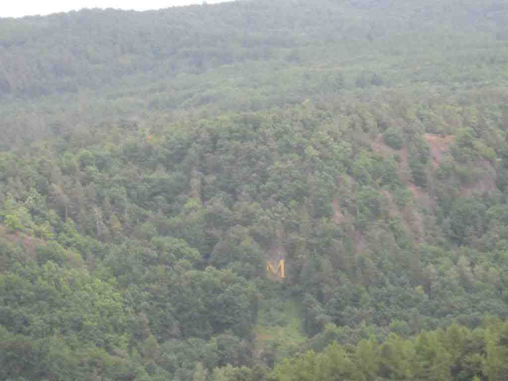 From this small look-out one could see this gigantic 'M' on a far hillside