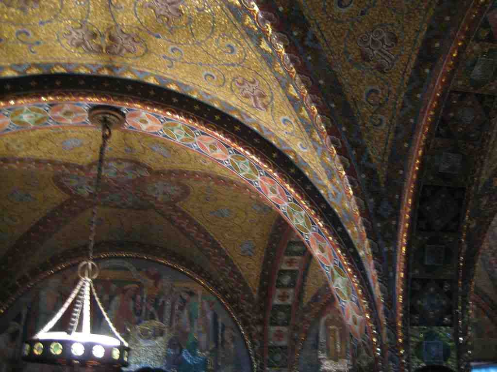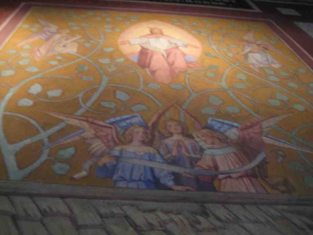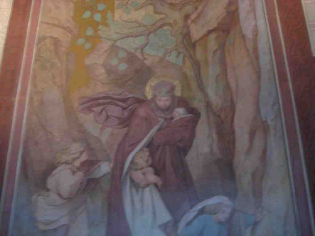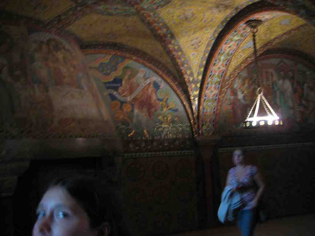 After that, we were led down a passageway which contained more modern murals depicting scenes from St. Elizabeth's life. She was canonized only 3 years after she died which was rare. She had been born a wealthy princess and died in voluntary poverty, helping the poor. Since you need to have performed a miracle to be a saint in the eyes of the Church, the most famous story is of St. Elizabeth carrying bread through the forest under her garment to the poor (which wasn't allowed). Her husband found her in the forest and asked what was under her cloak to which she replied that she was only holding roses. She opened up her sleeve and the bread all transformed into roses, getting her off the hook. Although it is a nice story, I am sure the sick were hungry as roses aren't very nutritious.