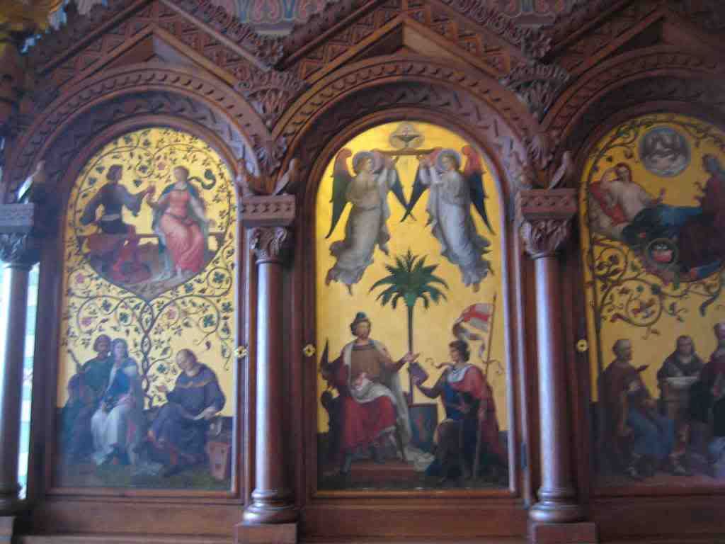 After that, we were led into this more modern room which had a big organ in it where music is still played. It serves as a chapel for Lutheran services and also a Catholic service one time a year to commemorate St. Elizabeth. The Jesus figure on the cross is extremely old and unique because he is wearing a crown instead of the normal crown of thorns