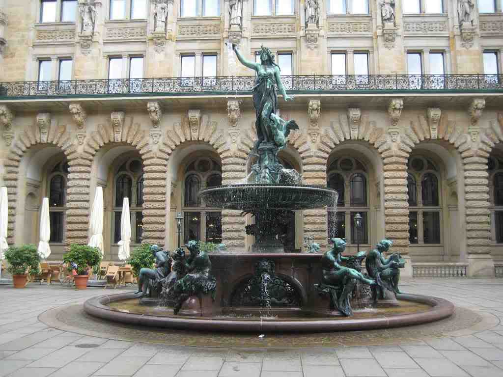 The inside of the Rathaus is extremely ornate and beautiful. There is a courtyard with this large fountain...