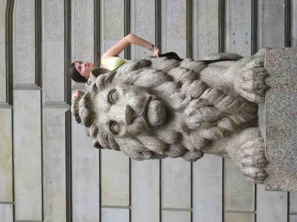 Ashley with der Löwe outside das Rathaus